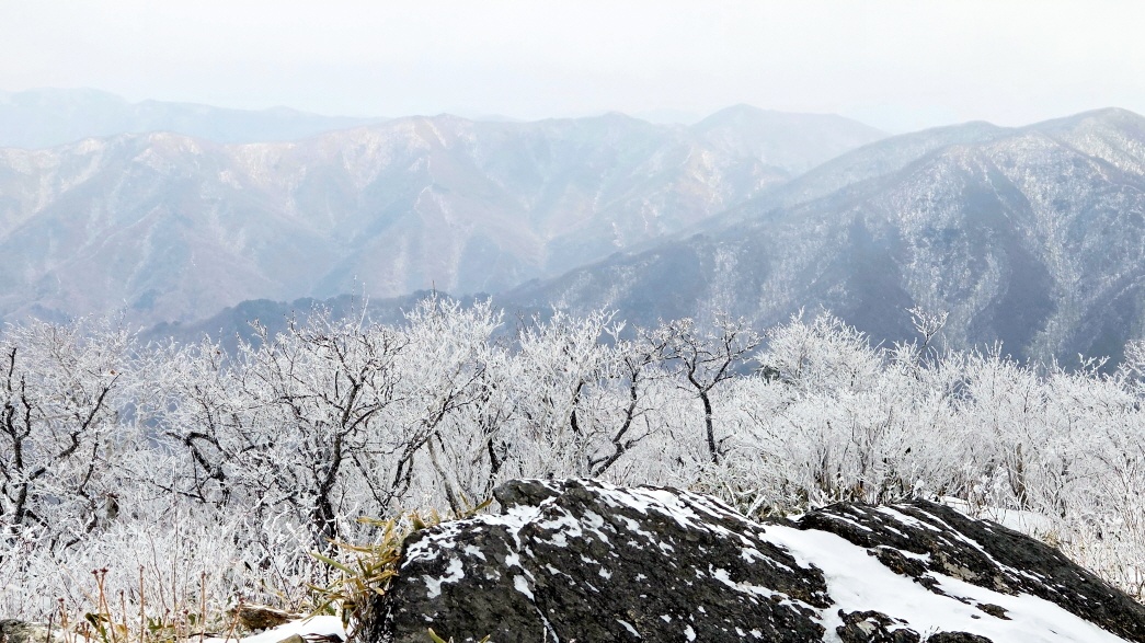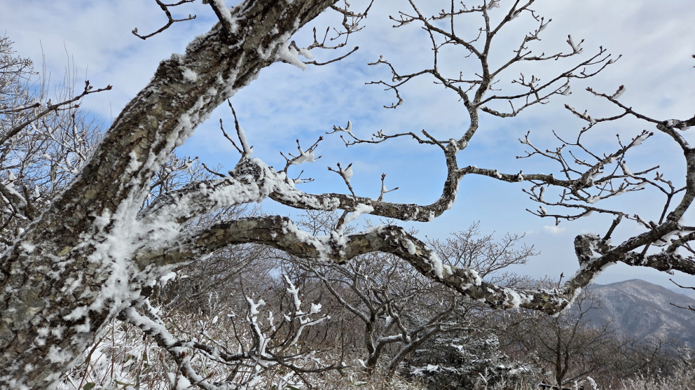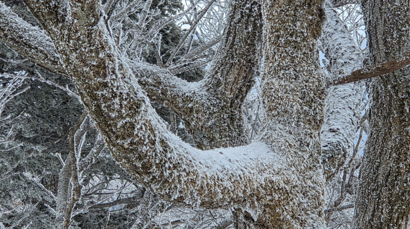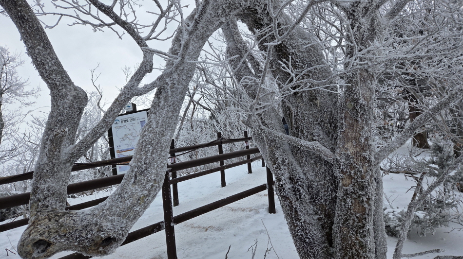 - 상고대: 영하의 날씨에 기온이 갑자기 뚝 떨어져 공기중의 수증기가 나무, 바위 등에 엉겨붙어 생긴 '서리꽃'