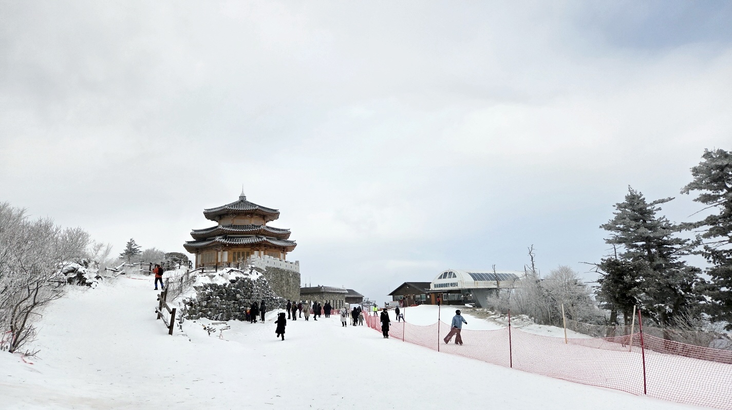 - 곤도라에서 내려 하얀 눈세상 여행을 마친다.