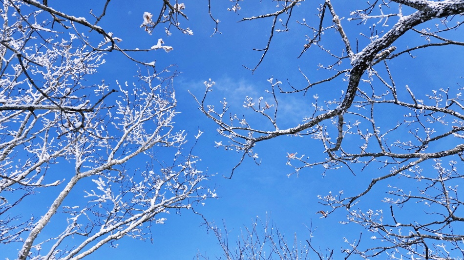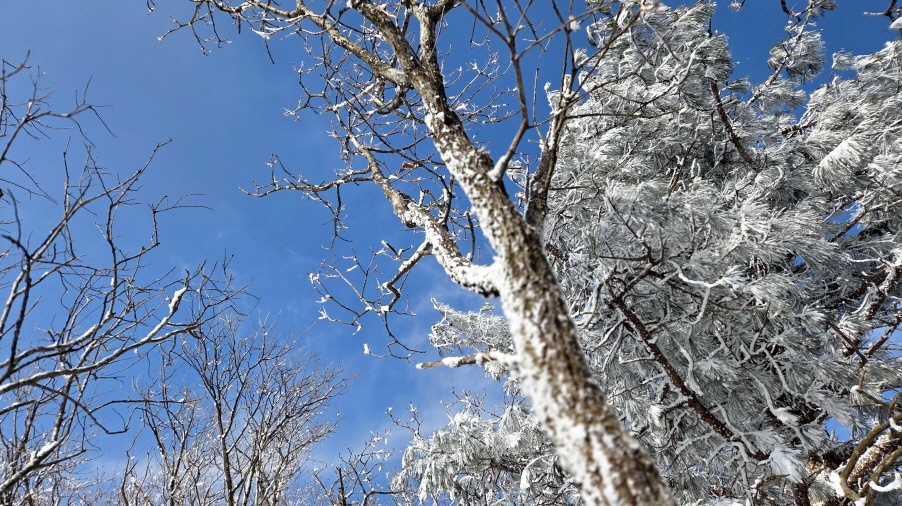 - 파란 하늘을 배경으로 빛나는 상고대는 더욱 선명하고 아름답다.
