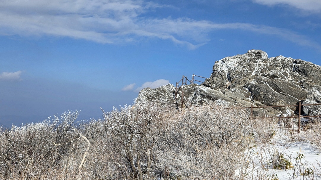 요즈음 계속되는 영하의 강추위 속에서, 어제 불던 강풍의 영향으로 밤동안 설천봉에 상고대가 형성되었을 것이라 기대하며