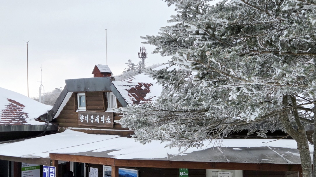 아침에 일어나 국립공원 덕유산 cctv를 확인하니, 곤도라 운행하는지 간간히 사람들이 보이고, 주변 나무가 하얗 풍광이 비쳐졌다.